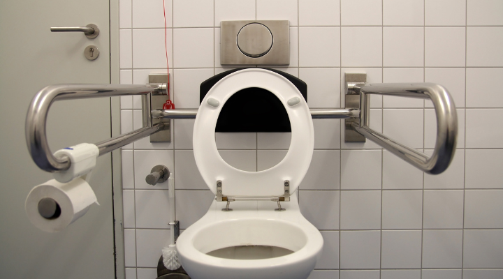 Toilet ini didesain lebih luas dengan pegangan di sisi kloset serta pintu yang lebih lebar. Permukaan lantai toilet wajib anti licin dan mudah dibersihkan untuk mencegah kecelakaan, menjadikan rubber flooring pilihan ideal.